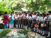 The young leaves of Teak wood tree were given to students who practically saw the leaves imparting red colour on being rubbed. The holy ‘Druva’ grass associated with many myths in Mahabharta was also seen. Sight of other rare species like Cardboard Palm, Cycus, Silk Cotton tree, Bronge Shiel, Blue snake weed, couroupitagianmis made the students feel the wonder of plant kingdom.