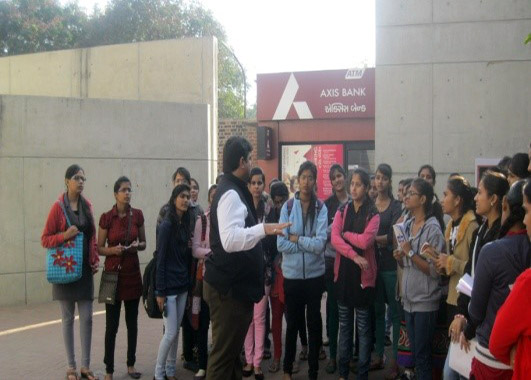Our students were taken to various sections like Louis Kahn plaza , Dr vikram Sarabhai Library, class room of PGM students, subway which joined old campus with the new campus, SBI bank branch of IIM etc. We are very grateful to Mr Chadrashekhar who is the incharge of plantation of IIM campus. He made our tour more informative in nature.
