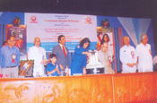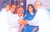Shri babulal Rungta, Chairman of Rajasthan Hospita, Shri Khimraj Jain, Chairman of Rajasthan Seva Samiti, Trustee of Rajasthan Seva Samiti, Shri Mulchand Dasani and Mithalal presenting memento to his Excellency Shri Naval Kishore Sharma, the Governor of Gujarat |
