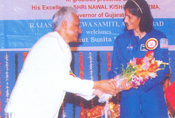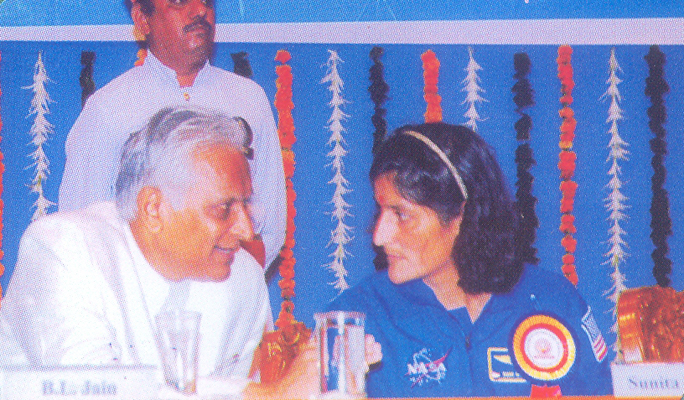 The Convenor Shri Bherulal G. Jain Honouring the Astronaut Sunita Williams with flowers |