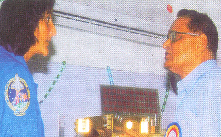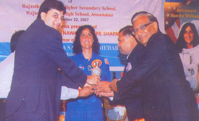 Felicitation memento offered to the Astronaut representing the Samiti by Shri Madanlal Ranka, Ramesh Bagrecha and Rajendar Bagrcha |