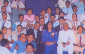 Photo of the Astornaut sitting amidst the Convenor, Bherulal G. Jain, Students and others being clicked |