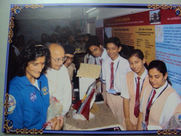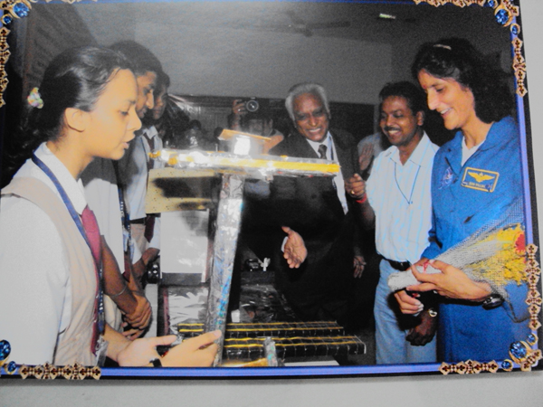 Sunita Williams visited the science exhibition at Rajathan English Hr. Sec. School.