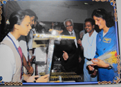 Students giving a description of their projects to Sunita Williams in the presence of her uncle Shri Deepak Pandya